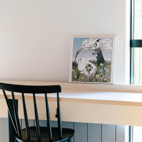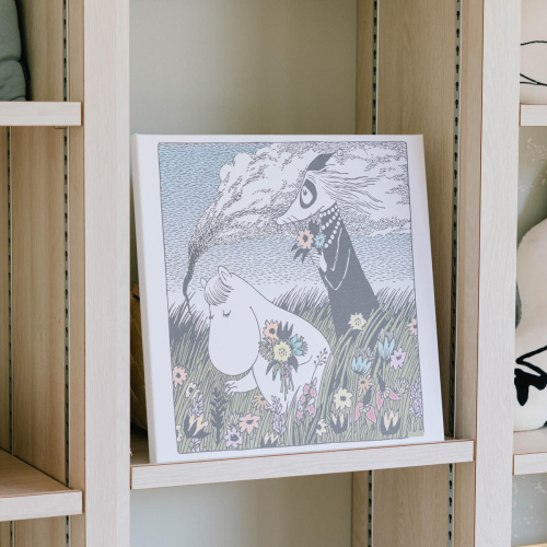 生地として販売されている素材をフレームに取り付ける一般的なファブリックフレームとは異なり、専用にデザインした柄を1点ずつプリントして使用しているので、フレームサイズピッタリの柄でムーミンアートをお楽しみいただけます。