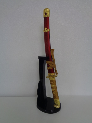 飾り台=木製・刀身=ダイガスト・鞘=樹脂・刀取付縛り房紐付き