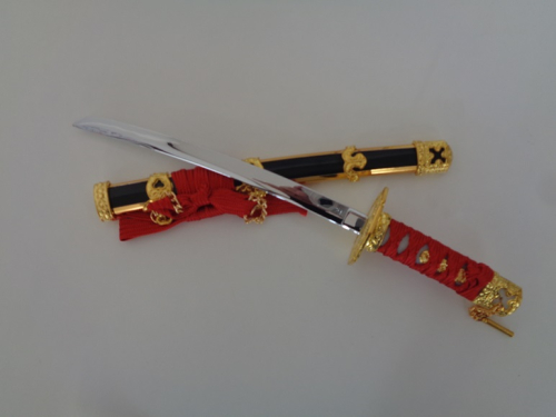 • 創業80余年 森泉人形の太刀一本飾り 赤 HNNAM006