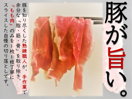 その部位の中でもヘルシーで脂が少ない「豚もも」のみを分割。