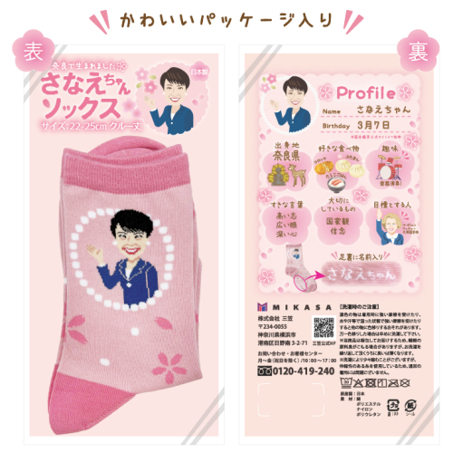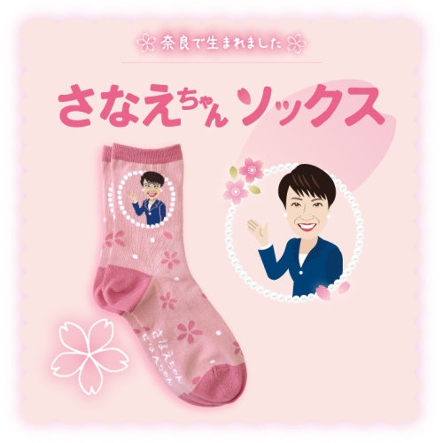 さなえちゃんソックス 22-25cm 3足セット 靴下 ソックス レディース サナ活 高市早苗 クルー丈 桜 奈良県 葛城市【mika071】