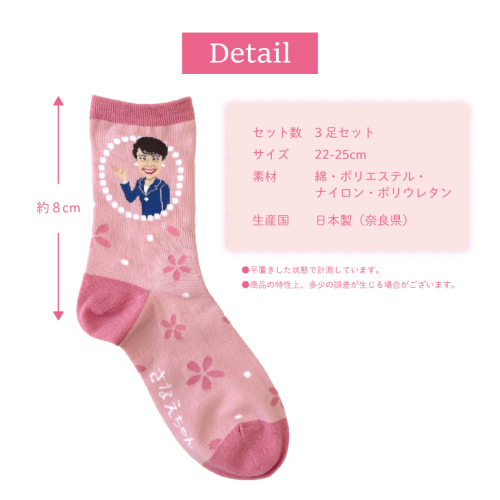 - さなえちゃんソックス 22-25cm 3足セット 靴下 ソックス レディース サナ活 高市早苗 クルー丈 桜 奈良県 葛城市【mika071】