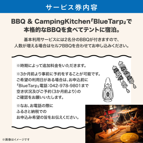 【BlueTarp】BBQ付きテント泊 2名様基本利用サービス券 HNNC004