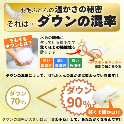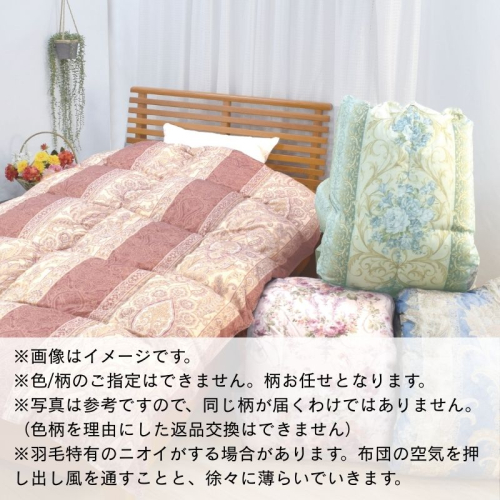 - 【工場直販】高級羽毛布団 ホワイトダウン90%【増量1.3kg】<シングル/色柄お任せ> HNNCG003