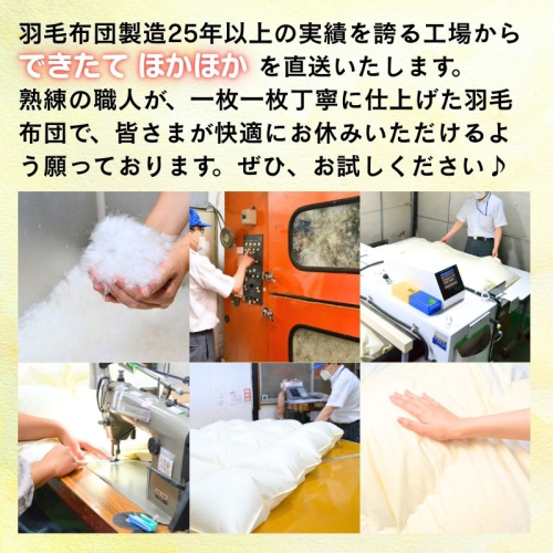 羽毛布団製造25年以上の実績を誇る工場から、できたてほかほかを直送いたします。