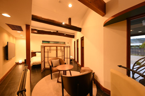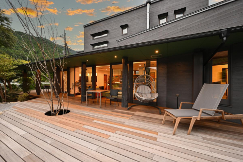 完全貸し切りの専用サウナ&専用露天風呂付き。好きな時に何度でも入浴可能です。ご入浴の後は、どうぞウッドデッキへ♪自然の風で涼みながら、優雅に"ととのう”時間を味わえます。