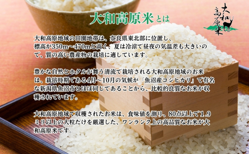 標高の高い宇陀市のきれいな水で育てたお米で、大粒で食べ応えがあり、しっかりとした甘みともっちりとした粘りが特徴の品種です。