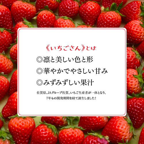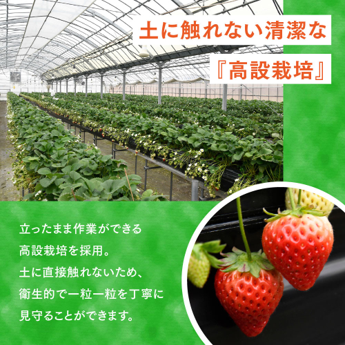 佐賀県生まれのブランドいちご「いちごさん」を、高設栽培で一粒一粒ていねいに育てました。