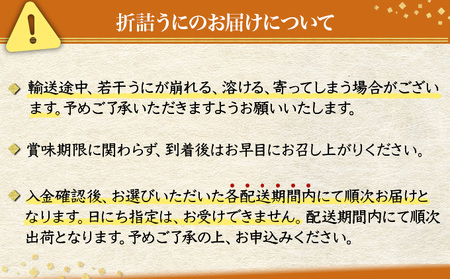 ▼輸送中の揺れや衝撃でウニが崩れる・溶ける・寄ってしまう可能性がありますが、品質には問題ございません。