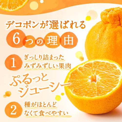 【ジューシー果実高糖度でこぽん】 ■5000箱以上送付の人気商品  ■大満足の大きさ新宮町でこぽん ■甘さと適度な酸味がクセになる 高糖度で適度に酸味があり、食べやすい柑橘です。 果肉がジューシーで美味しいデコポンです。 ふるさと納税で累計5000箱以上送付した人気商品 発送は、2027年2月~3月の予定です。 ※写真はイメージとなります。 ※新宮町内の農家が生産したもの