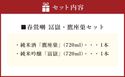 純米酒「鷹座巣」と純米吟醸「富嶽」を詰め合わせたセットです。