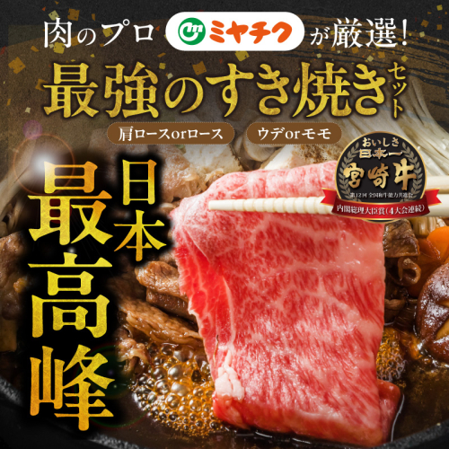 宮崎で生まれ、宮崎で育ち、指定された父牛を持つ黒毛和牛で5等級・4等級のものだけに『宮崎牛』の称号が与えられます。 甘く芳醇な香りと肉汁が口いっぱいにひろがり、とろける霜降りの旨味が特徴です。 ~宮崎牛で食卓を華やかに~ 肩ロース又はローススライスは、きめが細かく柔らかな部位で、鮮やかな霜降りが美しく、甘みの強い脂とコクのある風味が楽しめます。 宮崎牛ウデ又はモモスライス用もご一緒にお届けします。 生産者の愛情が詰まった宮崎牛を是非ご堪能ください。 都城市より至福の味をお届けします。