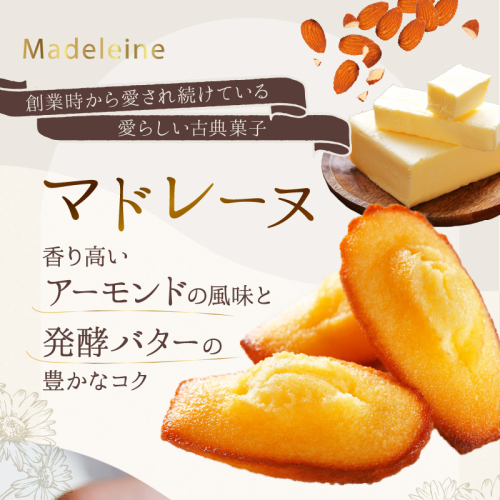 おいしさを求めて進化をかさねてきたフィナンシェと、創業当時から愛され続けているマドレーヌです。