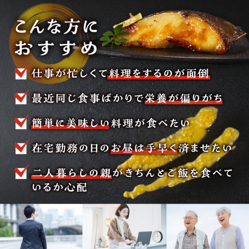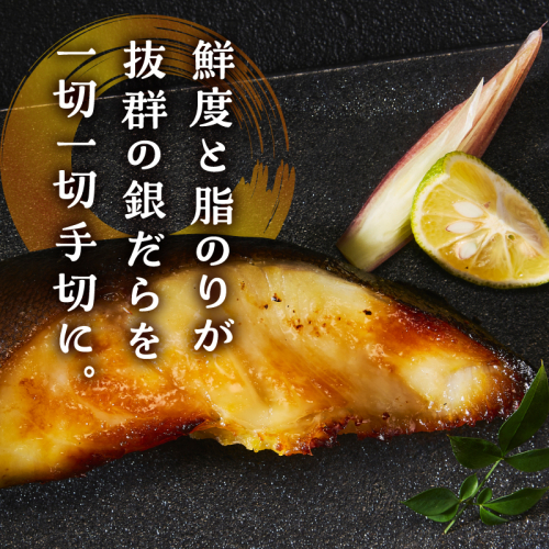 【説明】はえ縄船が漁獲した、鮮度・脂乗りの良い天然銀鱈を使用。より厳選された、サイズが大きく脂乗りがいい銀鱈を西京漬けにしました。味噌本来の大豆の旨味、西京味噌の甘さ引き立つ自社配合の西京味噌に漬け込んだ人気商品です。創業100年になります。