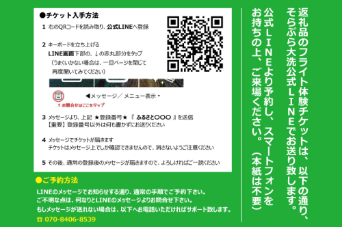 ・フライト体験には公式LINEからの事前予約が必要となります。(フライト体験は3月~12月の期間での開催となります。)