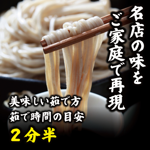 一般の同等そばと比較して蕎麦粉の使用割合が7割と高く、風味も良く仕上がっております。