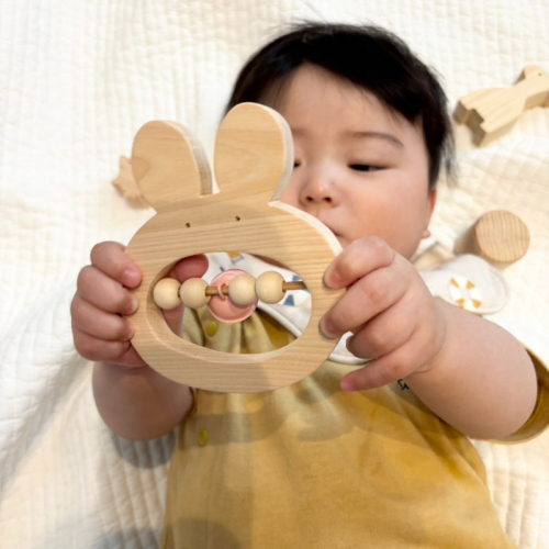 積み木もガラガラも、赤ちゃんの小さな手でも握りやすいよう、角を丁寧に落とし、なめらかに仕上げました。