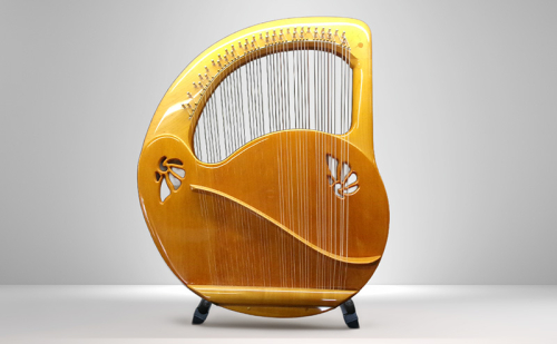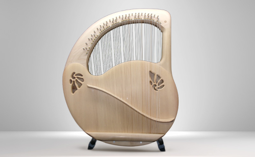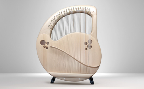 本製品「アフロディーテの竪琴 リーアノンモデル」は、低音Dから高音Gまでの42本の弦を備えた、ソプラノレンジのライアー(竪琴)です。箱型構造の共鳴胴を持ち、明るく煌びやかな響きと豊かな音量を兼ね備えています。