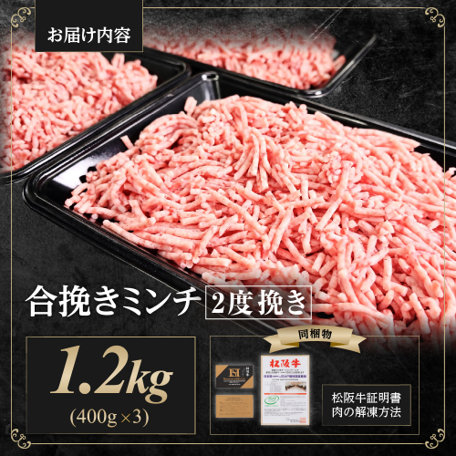 - 松阪牛 合挽ミンチ(2度挽き) 1.2kg(約400g × 3P) 国産牛 和牛 ブランド牛 JGAP家畜・畜産物 農場HACCP認証農場 牛肉 肉 高級 人気 おすすめ 神戸牛 近江牛 に並ぶ 日本三大和牛 松阪 松坂牛 松坂 2度挽き 合い挽き ミンチ 合い挽きミンチ 冷凍 三重県 多気町 SS-133