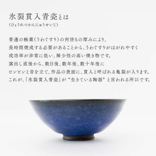 「氷裂貫入青瓷」は、青瓷(せいじ)の一種で、氷が割れたような模様が美しさを際立てる逸品です。