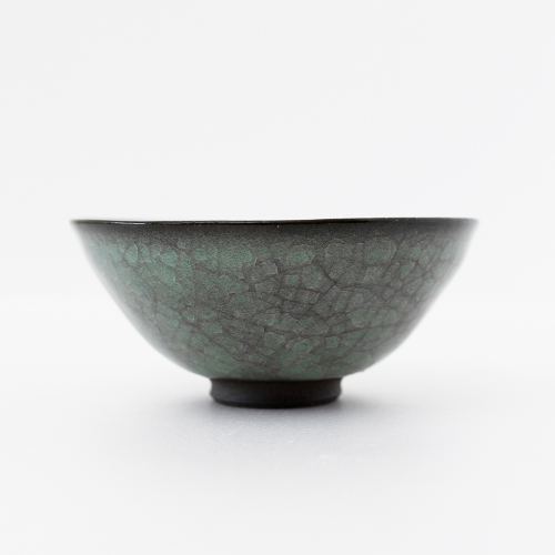 窯出し直後から、数日後、数年後、数十年後に、ピンピンと音を立て、作品の表面に、貫入と呼ばれる亀裂が入ります。これが、「氷裂貫入青瓷」が “生きている陶器” と言われる所以です。