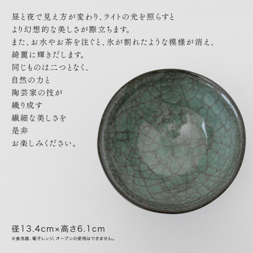- 【氷裂貫入青瓷】抹茶茶碗 (小野寺裕司 作) 径13.4cm×高さ6.1cm | 茶碗 湯飲み 夫婦湯飲み 陶器 陶芸 お茶 食器 [EW42-NT]