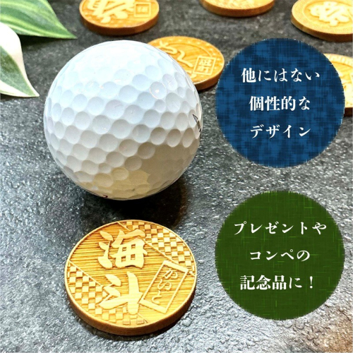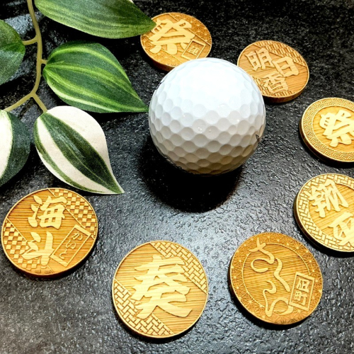 レーザー彫刻を施した竹札のゴルフマーカーです。