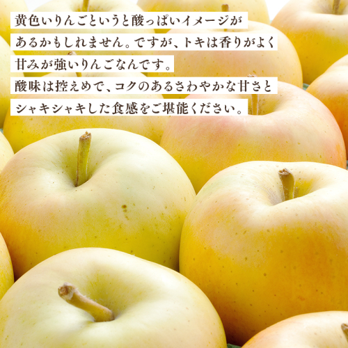 【出荷予定:10/1~12/28 年内発送 【訳あり】家庭用 トキ 約2kg【那由多のりんご園・平川市産】 りんご産地「青森」の中でも特に栽培に適した平川市。品質、味共に抜群のりんごです。青森県を代表する黄色りんごで、酸味は弱め。コクのあるさわやかな甘味とシャキシャキした食感が味わえます。 ※5段階中、3番手規格(つる無し、擦れ、キズ、色むら等有りの訳あり含む)のりんごをお届けします。 ※到着後冷蔵庫で保管し7~14日程度を目途にお早めにお召しあがりください。(食べきれない場合は新聞紙かラップで包み、冷蔵庫で保管すると日持ちしやすくなります。) ※蜜入りは保証してませんのでご了承お願いします。