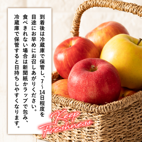 ※5段階中、3番手規格(つる無し、擦れ、キズ、色むら等有りの訳あり含む)のりんごをお届けします。