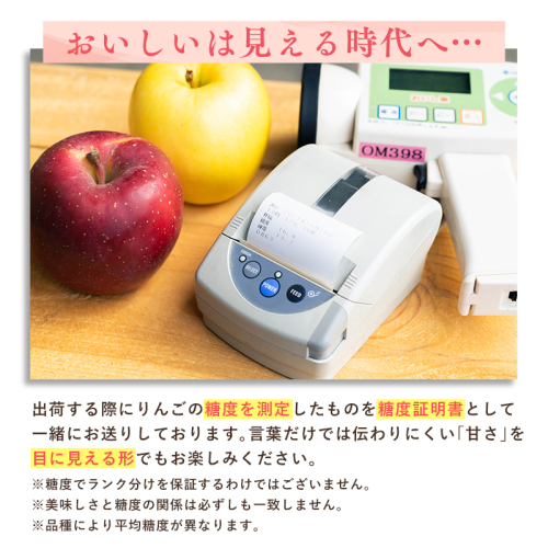 つる無し、擦れ、キズ、色むら有りのりんごですが、味は贈答用の商品と変わらず抜群です。甘味・酸味・食感が抜群で、蜜が入りやすいうえに、果汁もたっぷりの品種です。