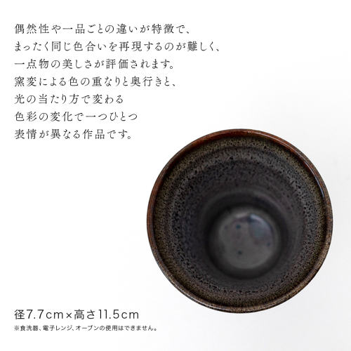 - 【燿彩窯変紫焔釉】ビアグラス (小野寺裕司 作) 径7.7cm×高さ11.5cm | ビール 焼酎杯 酒杯 陶器 陶芸 ギフト 贈答 [EW46-NT]