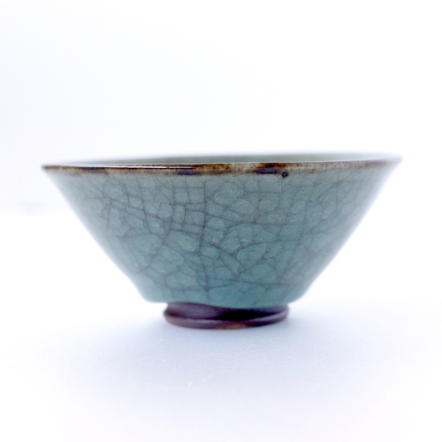 窯出し直後から、数日後、数年後、数十年後に、ピンピンと音を立て、作品の表面に、貫入と呼ばれる亀裂が入ります。これが、「氷裂貫入青瓷」が “生きている陶器” と言われる所以です。
