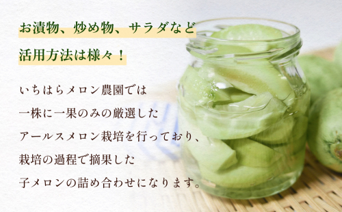 本品は、その過程で摘果された子メロンを詰め合わせたものです。