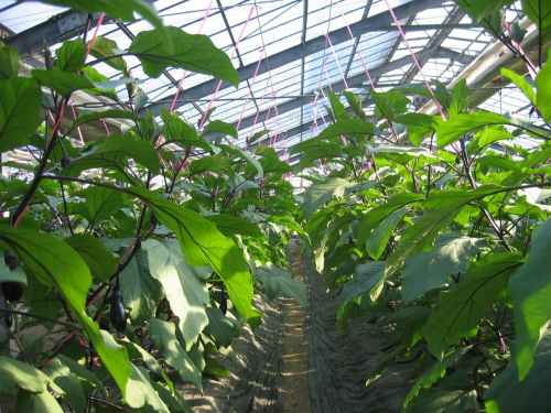 『とげなし美茄子』の特徴は、ヘタや茎、葉のどこにもトゲがなく、皮のつややハリが見事で、まさにビーナスの名の通りの美しさです。