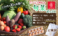 その中から、季節の旬野菜を6~8種、熊野養鶏ブランド「美豊卵10個」、精米3キロを返礼品としてお届けします。