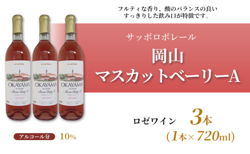 サッポロ ポレール 岡山 マスカット ベーリー A ロゼ ワイン 3本 岡山ワイナリー お酒 ワイン ぶどう  30461 - 岡山県赤磐市