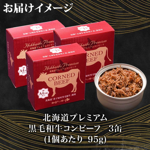 - 3583. 黒毛和牛 コンビーフ A4-5 等級 3缶 国産 牛肉 95g ビーフ 北海道産 高級 和牛 無塩せき 缶詰 保存 備蓄 肉 長期保存 保存食 キャンプ 送料無料 北海道 弟子屈町 9000円