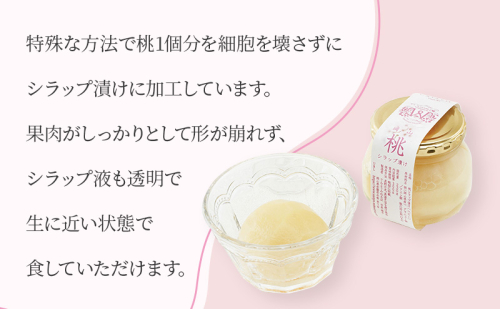 特殊な方法で桃1個分を細胞を壊さずにシラップ漬けに加工しています。