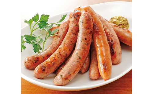 ソーセージは一晩塩漬けをし、1本ずつ手作業で詰め、その後桜チップでスモークし、うま味をたっぷりと閉じ込めました。