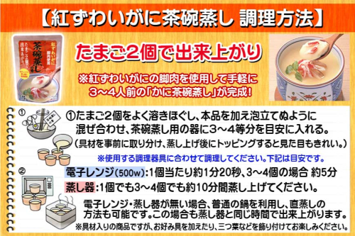紅ずわいがにの脚肉を具材に使用し、かつお節の和風だしを効かせた茶碗蒸しの素です。