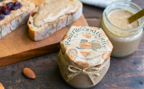 生アーモンドを薄皮付きのまま擦りつぶし、クリーミーなペーストにしました。