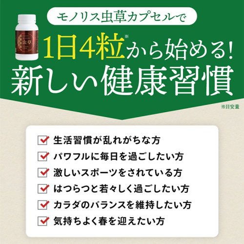 - ■名称:日本産冬虫夏草 モノリス虫草カプセル