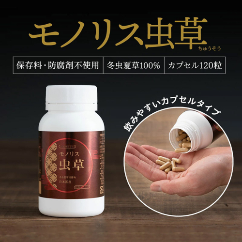 日本産冬虫夏草 モノリス虫草カプセル 120カプセル 2本 (1本30g)