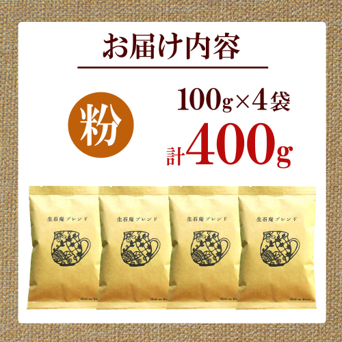 • こだわりの自家焙煎珈琲 生石庵ブレンド 100g×4袋【粉】 スペシャルティコーヒー