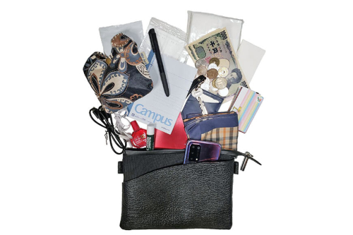 【その他】名刺5枚、ペンや口紅などの細いスティック状小物2本、必需品類(スマホ、鍵、モバイルバッテリー、エコバッグ、除菌シート等)