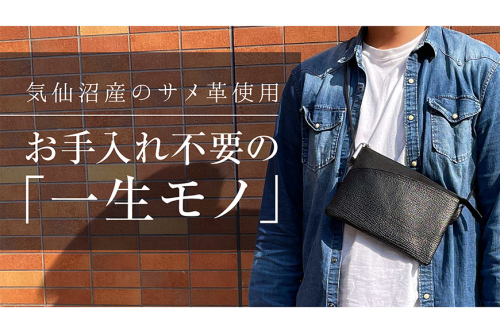 主素材に、世界最高品質と謳われる気仙沼産ヨシキリザメの天然サメ革(シャークスキン/シャークレザーとも呼称されます※おろし金などに使われる“サメ皮”とは異なり、柔らかな素材です)を使用しています。