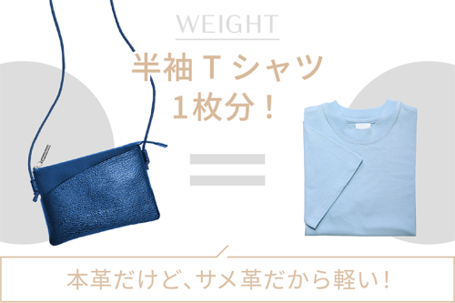 数あるレザーの中でも、サメ革はキズ汚れ・水濡れに強く、丈夫で軽量な素材です。