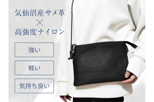 サメ革 バディバッグ peg 夜凪(ブラック) サコッシュ 財布 ポシェット おしゃれ バッグ ポーチ 鞄 カバン [アトリエシャーク 宮城県 気仙沼市 20563735]