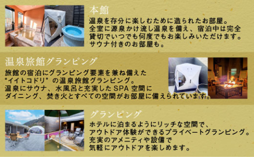 グランピング・本館・温泉旅館グランピングすべての宿泊にご利用いただけます。