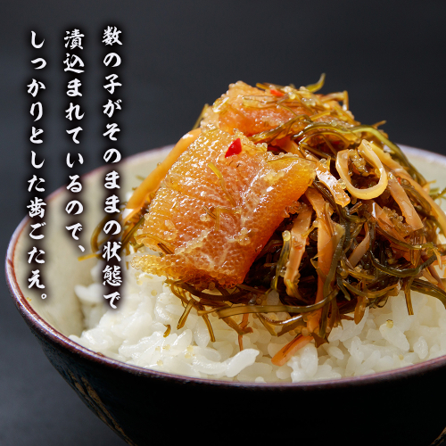 数の子がそのままの状態で漬込まれているので、しっかりとした歯ごたえとおかずとしての食べごたえも、ご満足頂ける逸品に仕上がりました。
